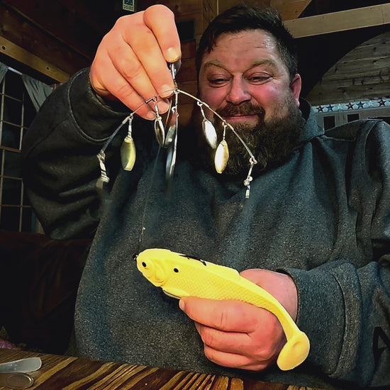 A loud, magnum 7-bladed rig to be paired with ANY moving bait, adding the power of the food chain to your favorite musky baits to complete the ultimate PREDATOR RIG.