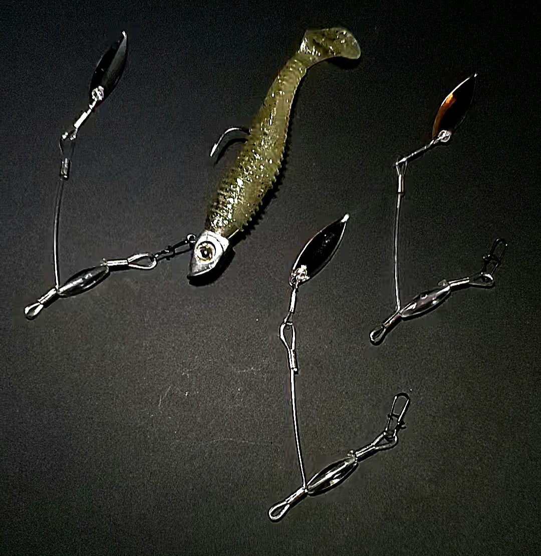 Virtually indestructible, the Solo Spin is very simply a classic safety pin style of spinnerbait, allowing the angler to choose to pair it with their favorite jig or jighead and plastic. Built on 150# Seaguar Blue Label Flourocarbon with a single size 3 Willow leaf blade attached by our hamdmade clevis-style swivel and a stout 50# VMC DuoLock snap, your Solo Spin will outlive you, as long as you don't bust it off first.