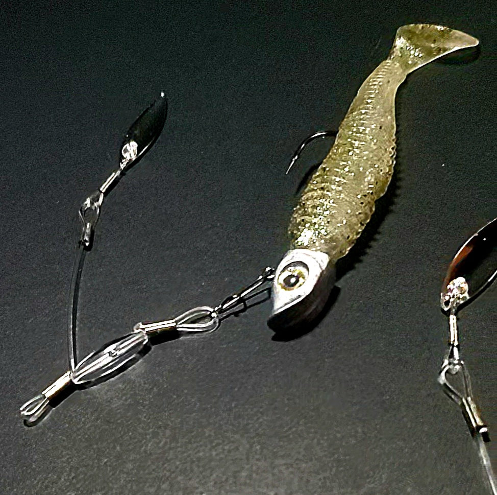 *Note: Like the Quad Hover, we have elected to minimize hardware to keep your Solo Spin looking as natural and subtle as possible, so there is no ring or swivel included as a line tie. If you are using braided line, tie on a snap or snap swivel and attach your Solo Spin to that. You're good to go with Flouro/Mono/Copoly. Wet your knot well.